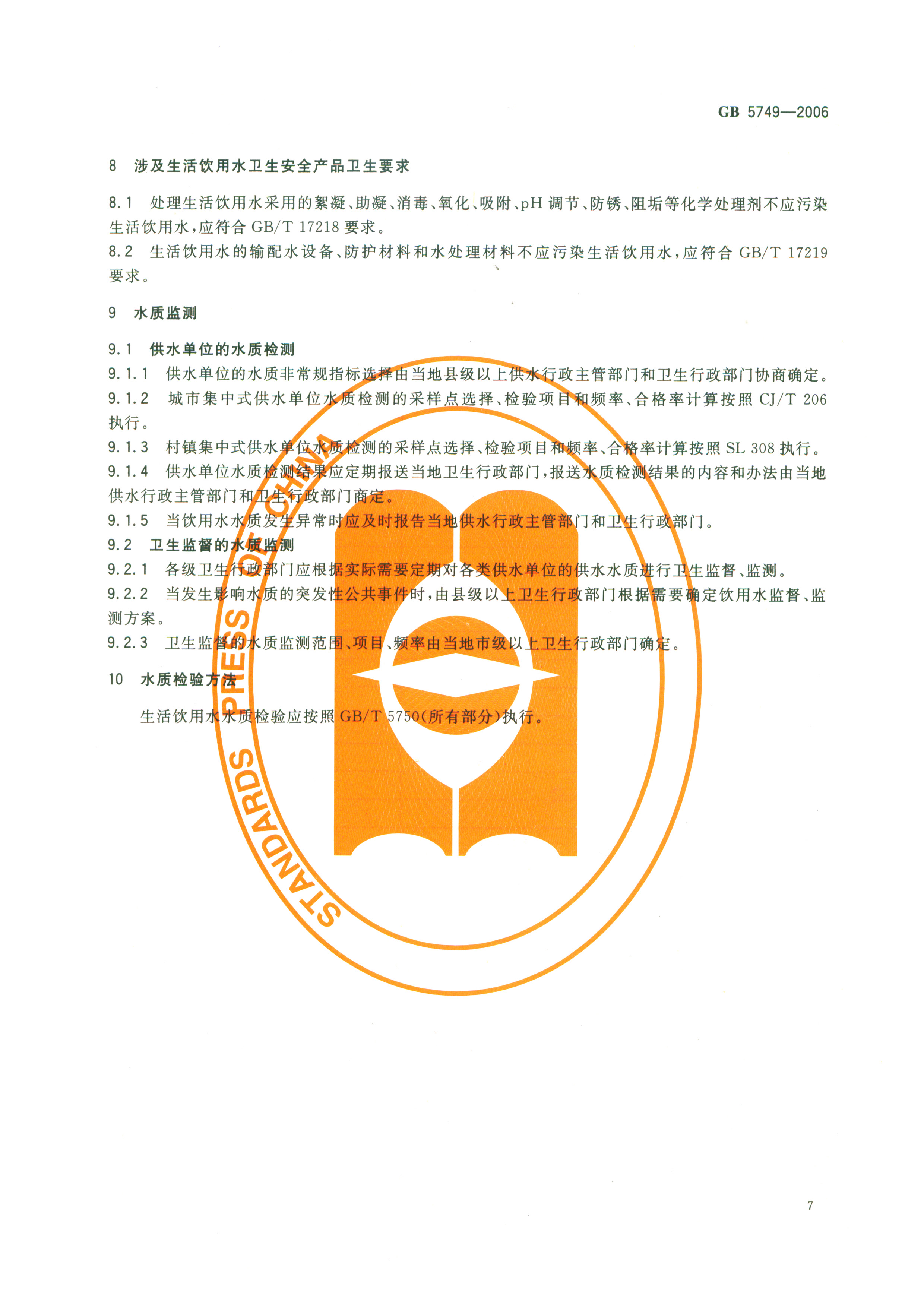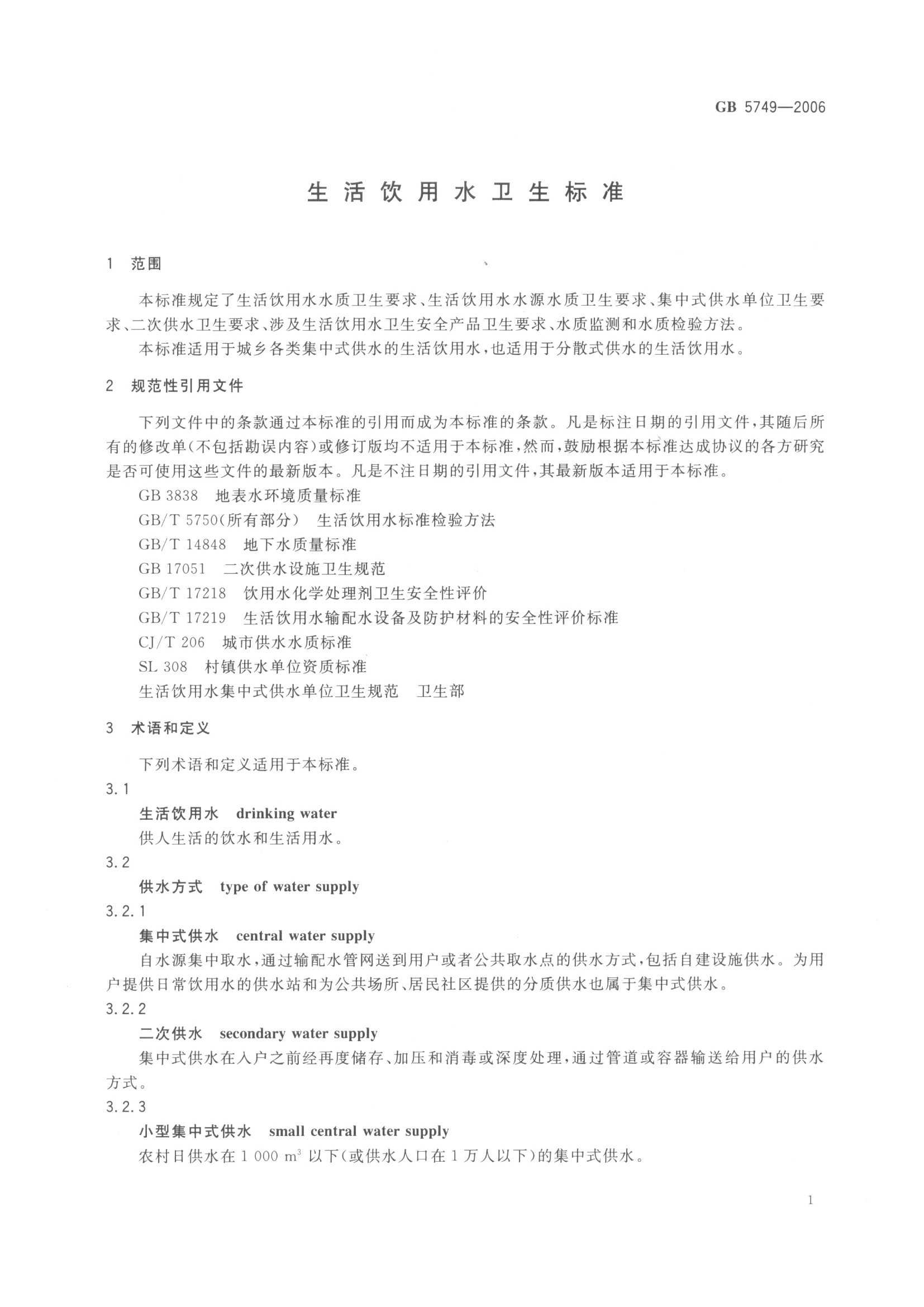 《生活飲用水衛(wèi)生標(biāo)準(zhǔn)》(GB5749-2006)