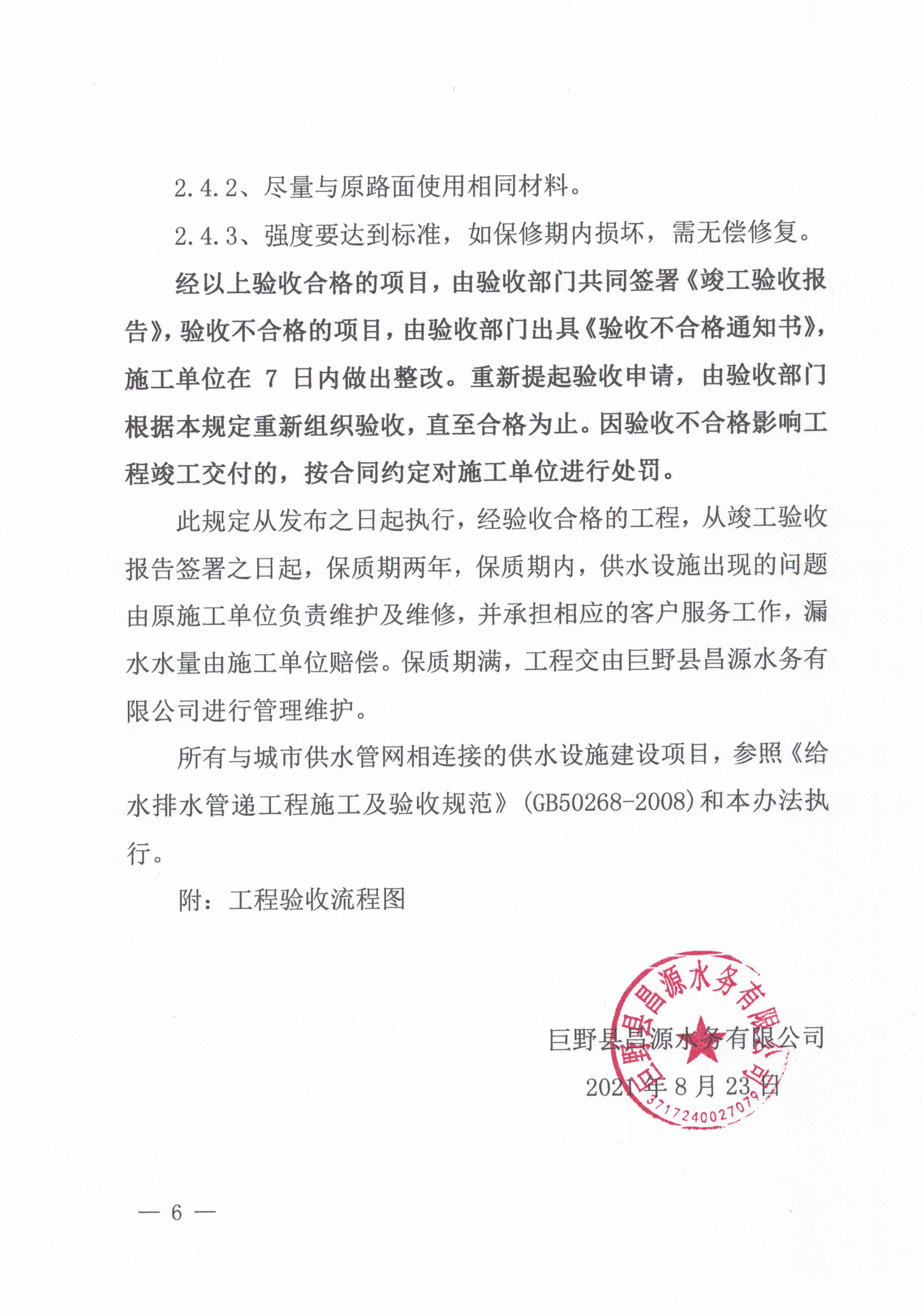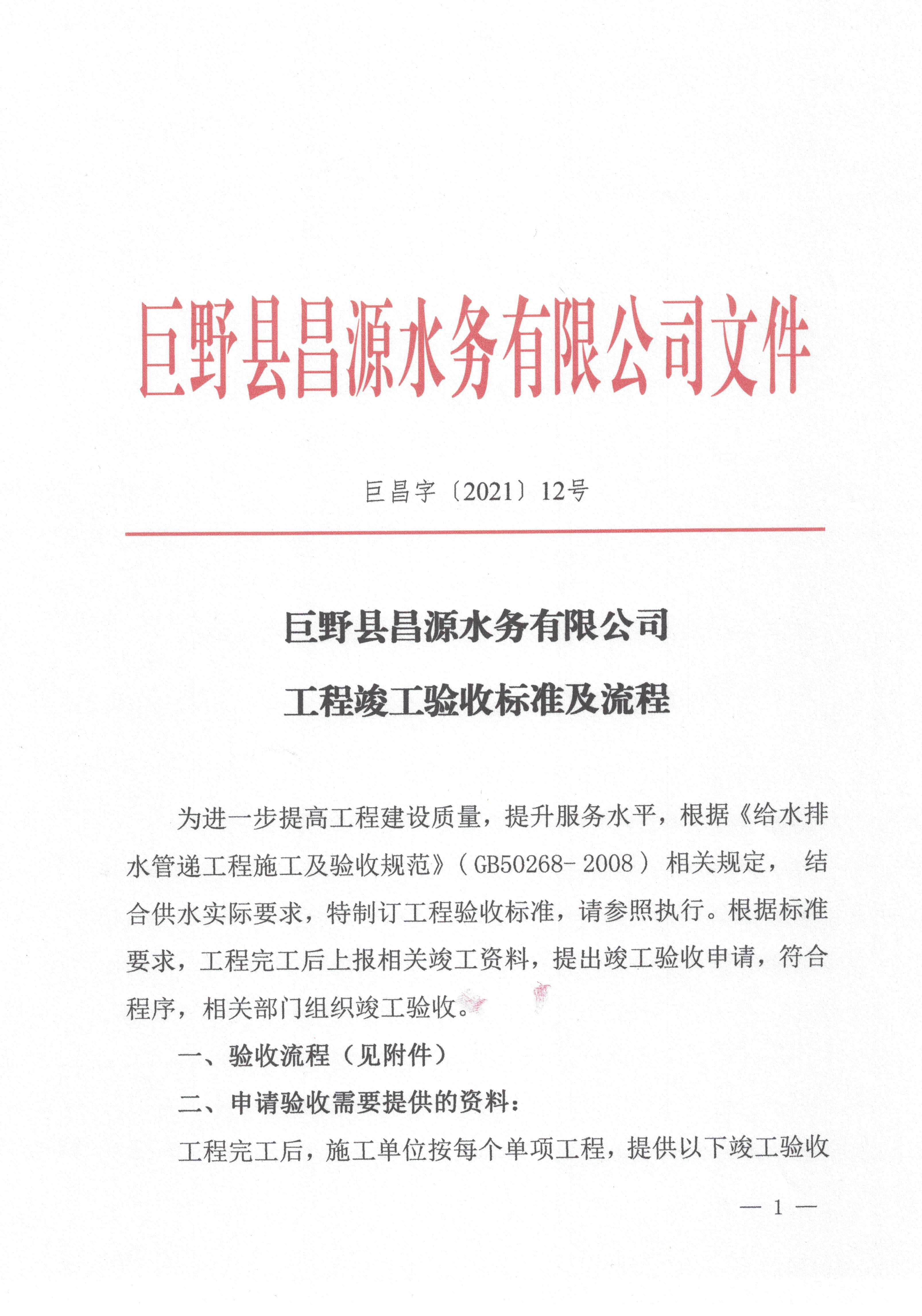 巨野縣昌源水務有限公司工程竣工驗收標準及流程