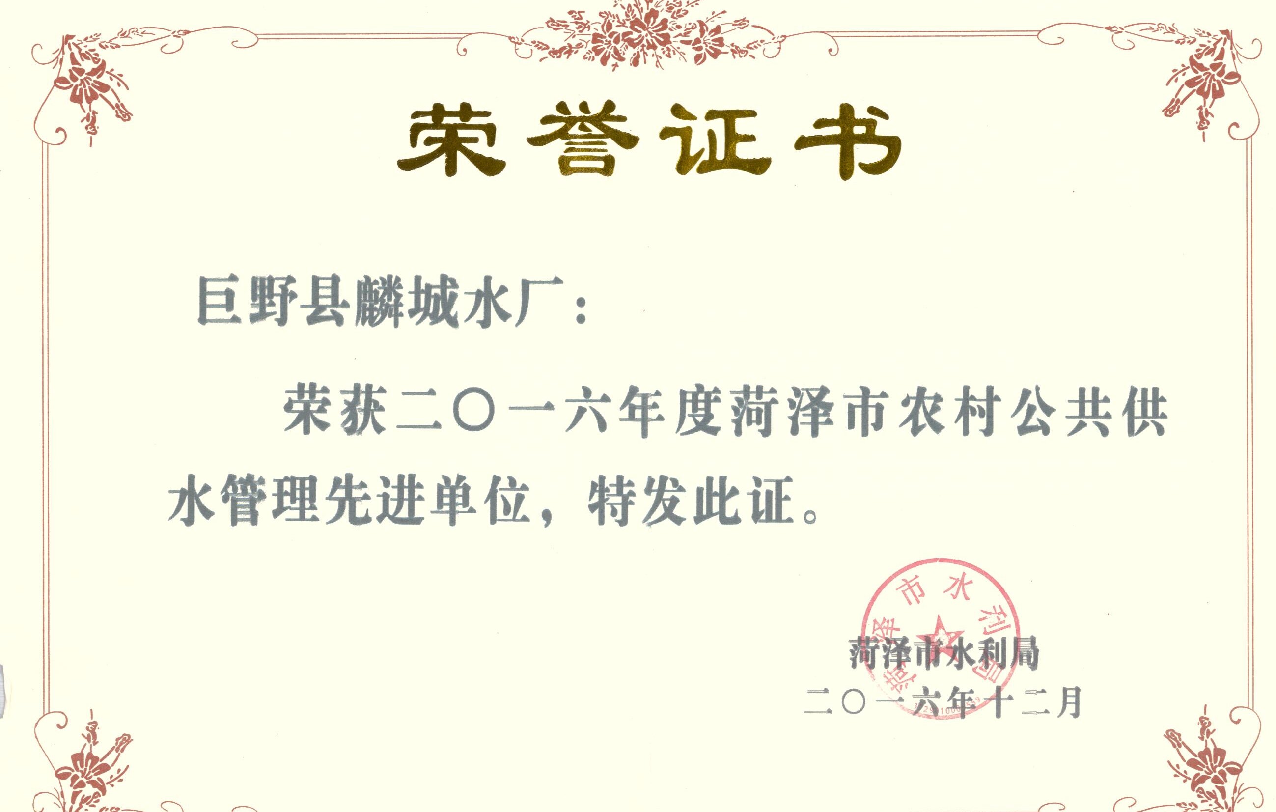 2016年度菏澤市農(nóng)村公共供水管理先進(jìn)單位