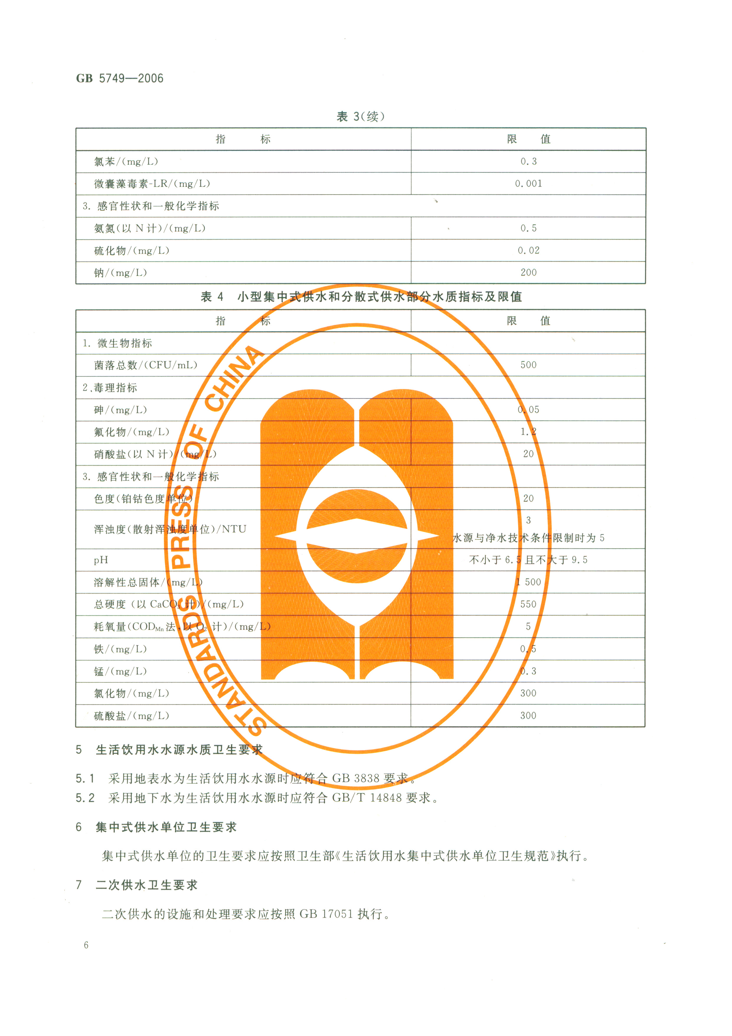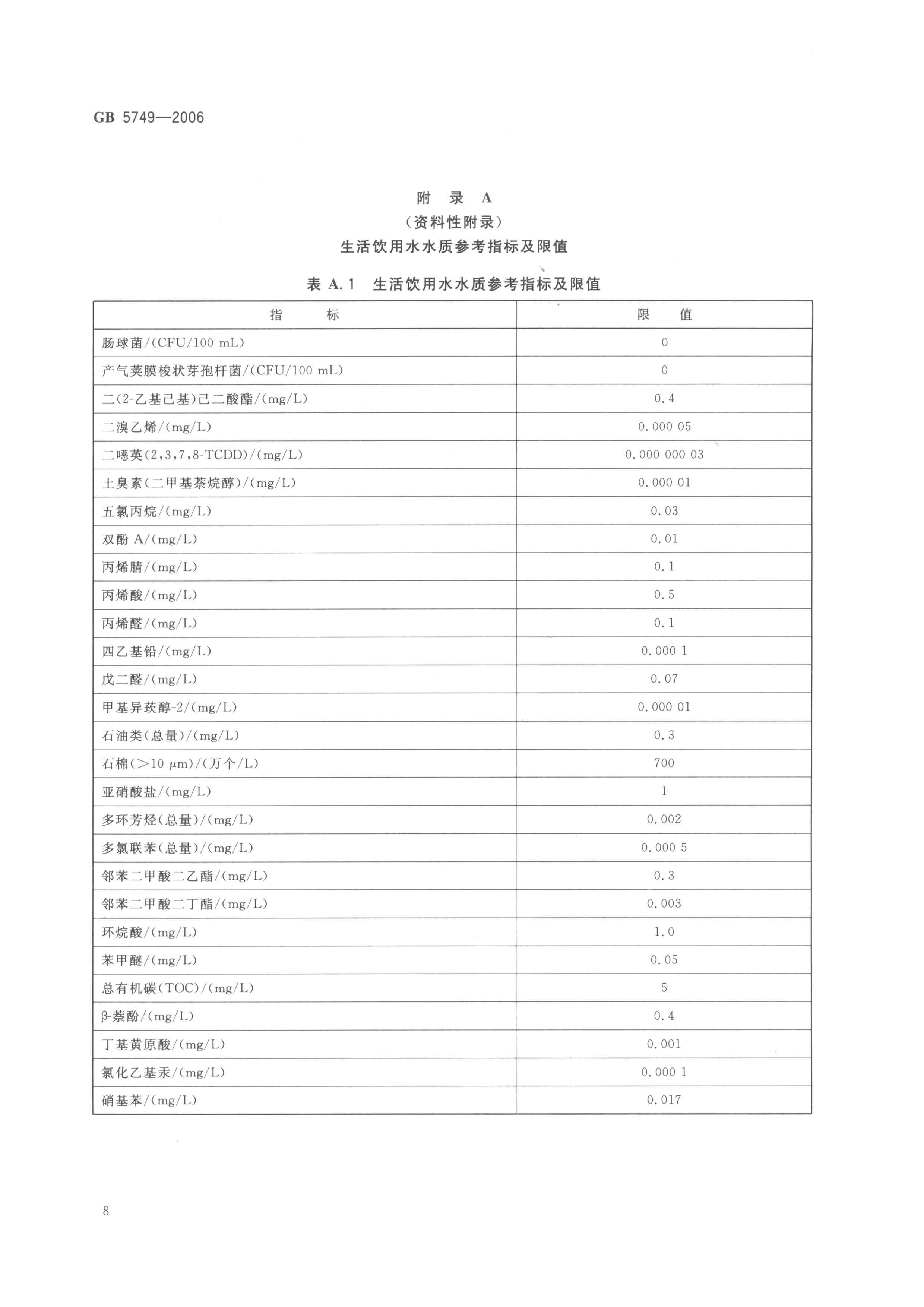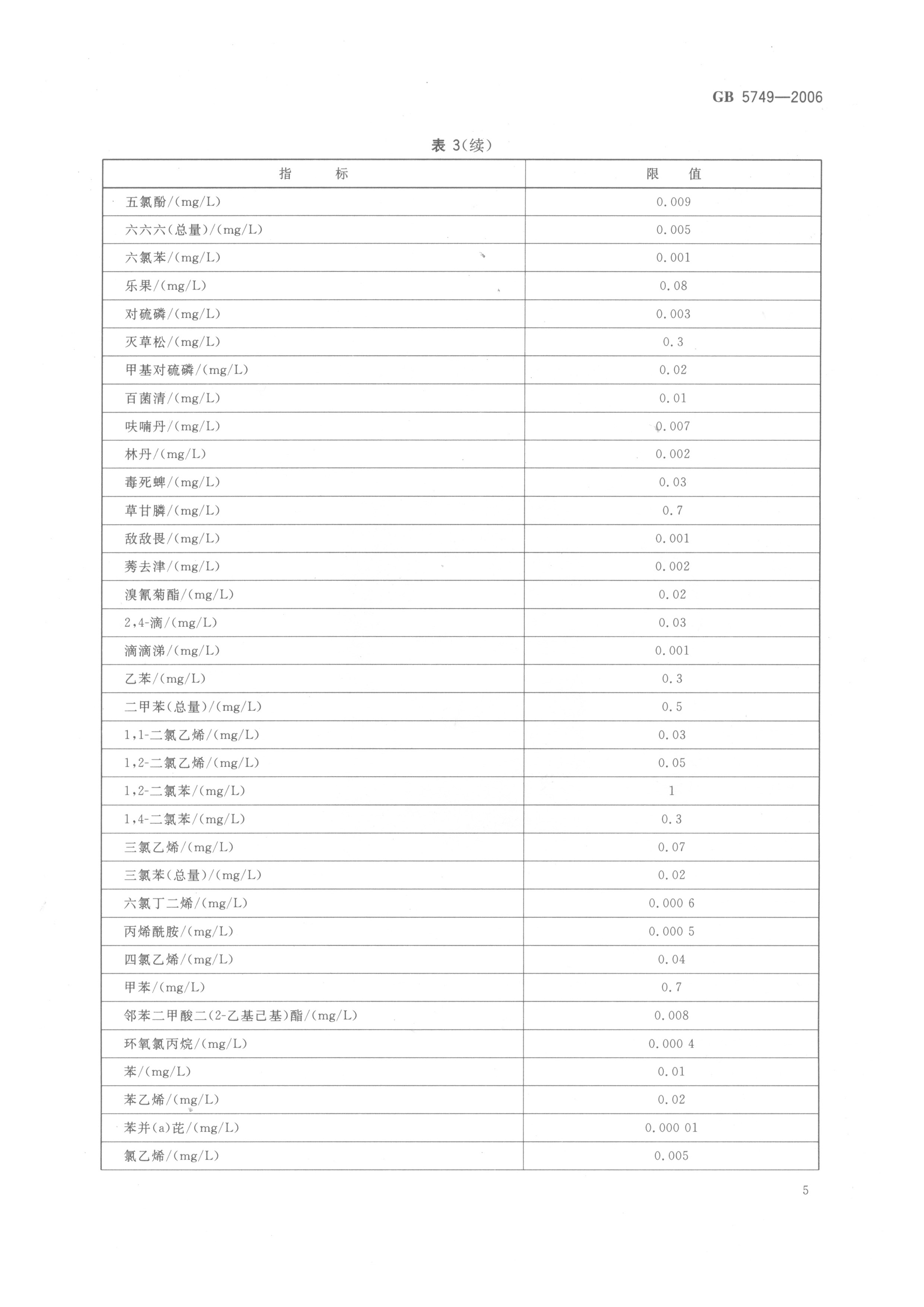 《生活飲用水衛(wèi)生標(biāo)準(zhǔn)》(GB5749-2006)