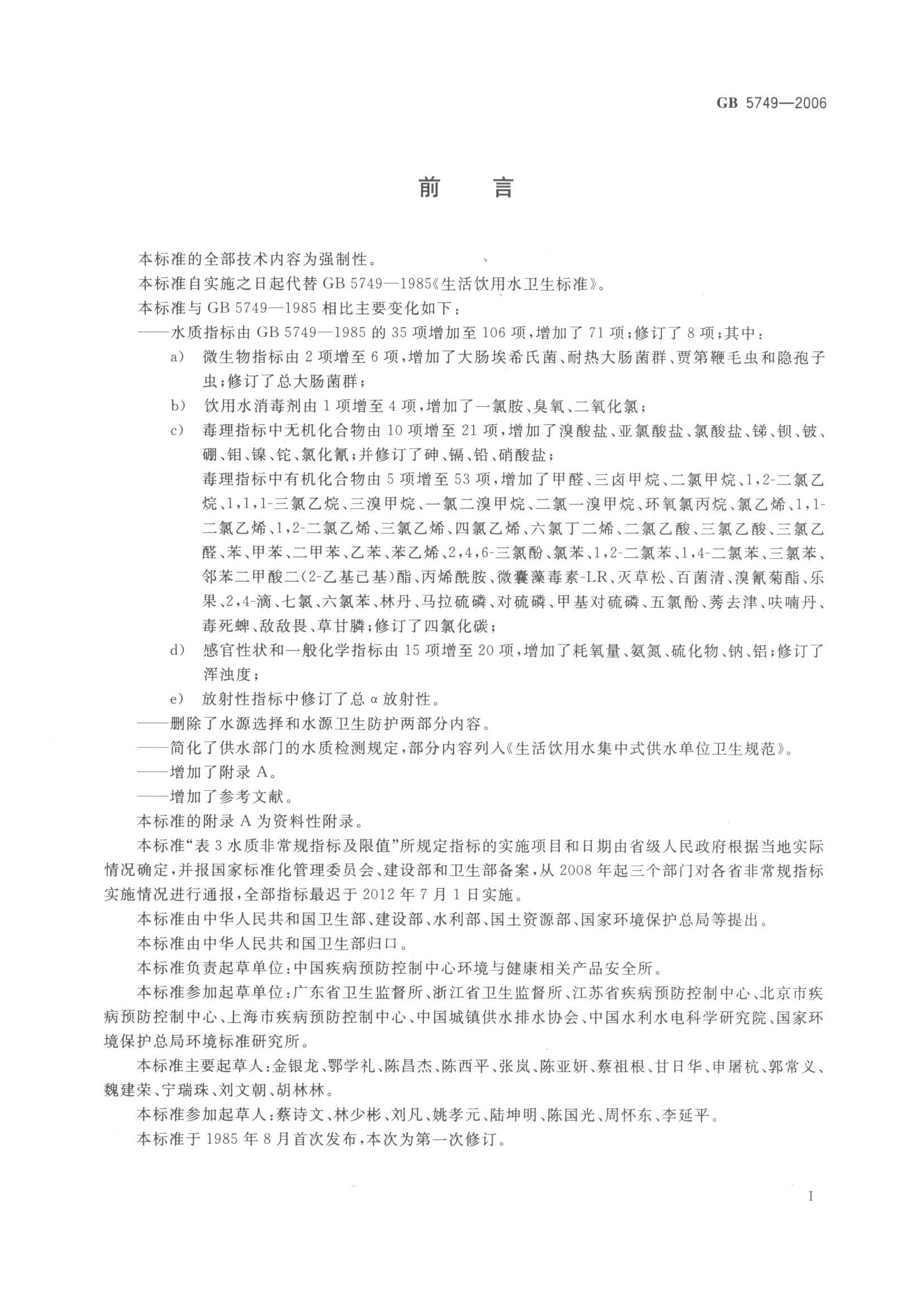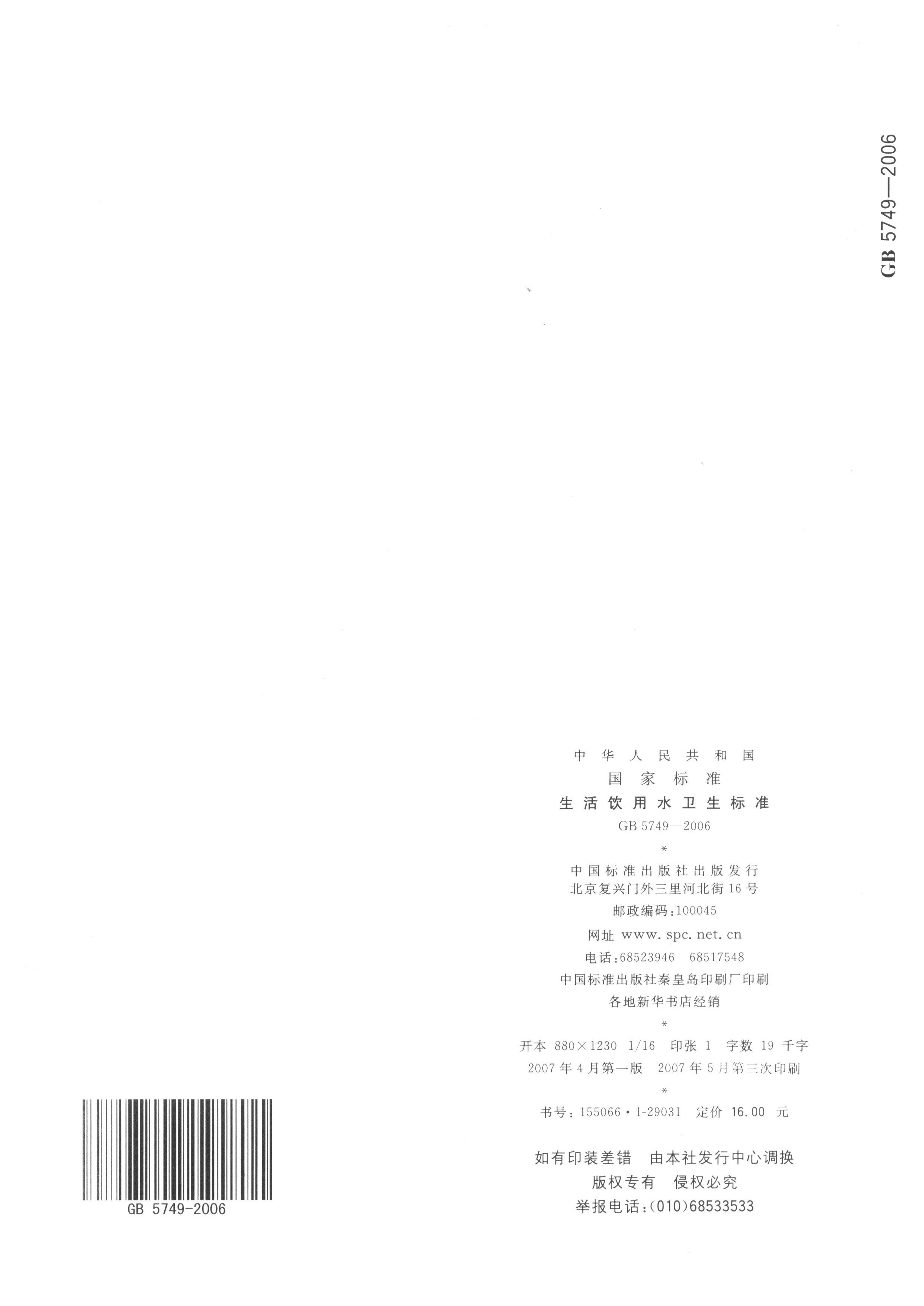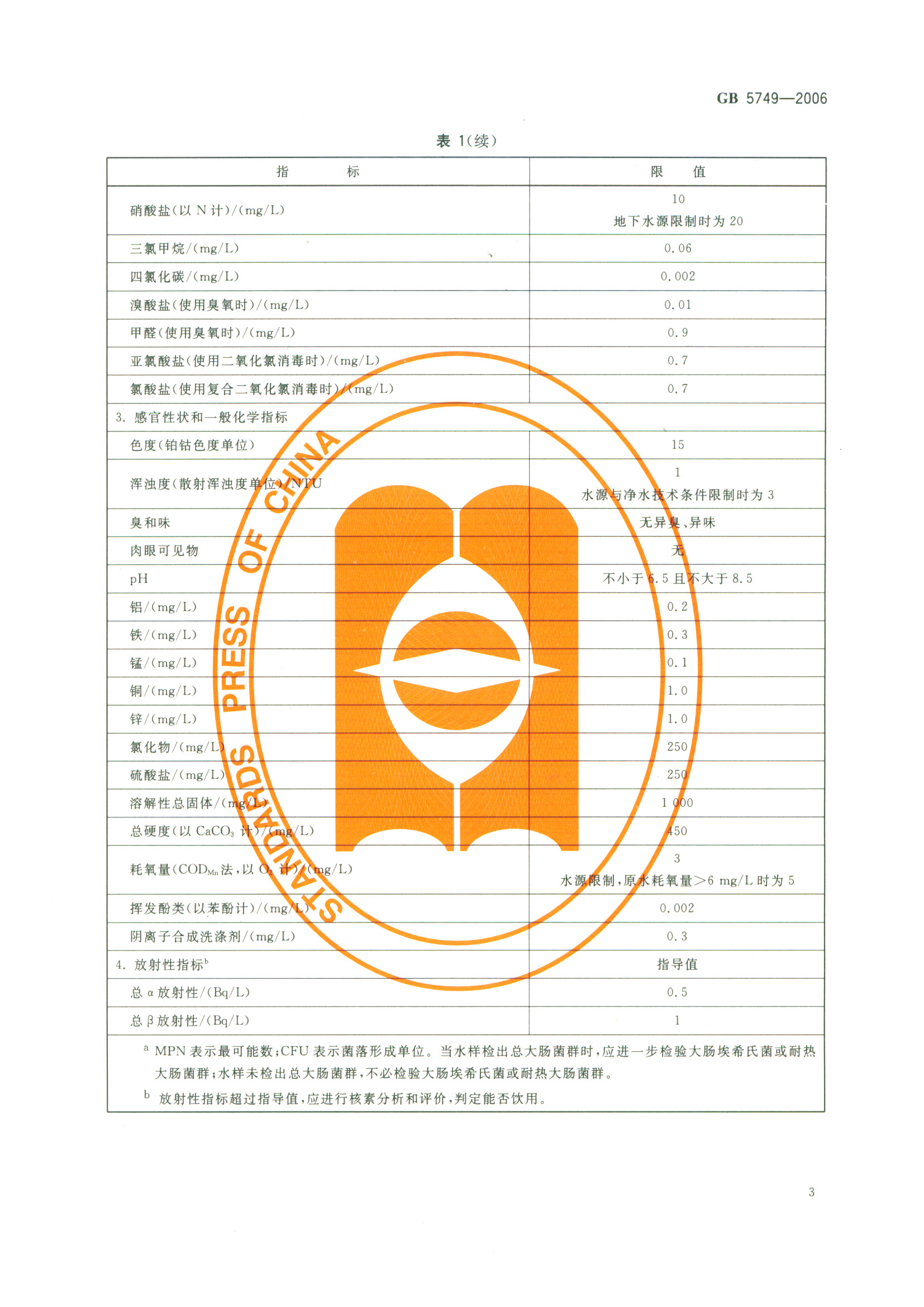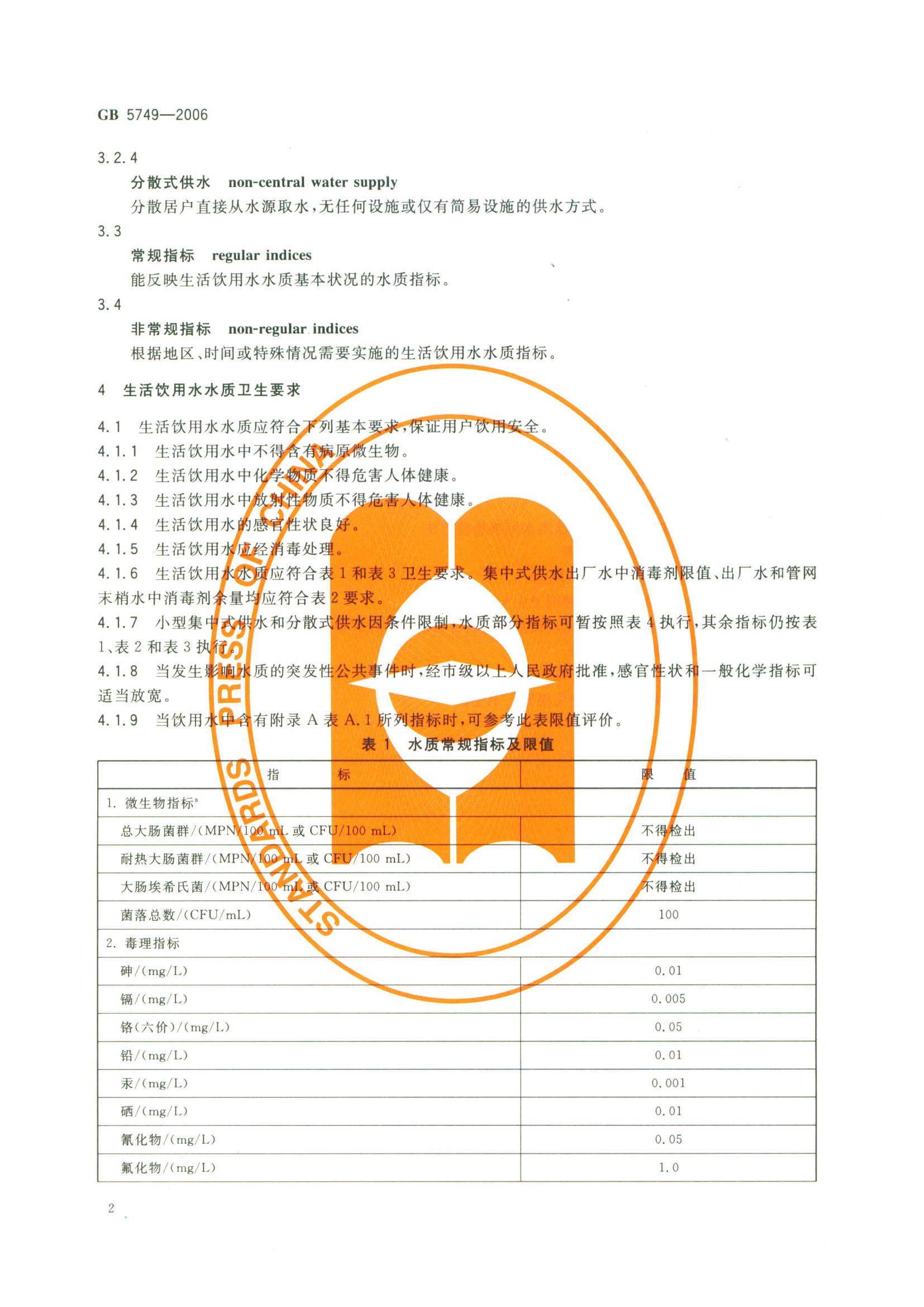 《生活飲用水衛(wèi)生標(biāo)準(zhǔn)》(GB5749-2006)