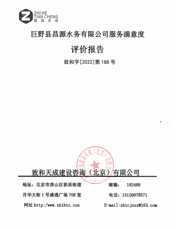 巨野縣昌源水務有限公司服務滿意度評價報告下載