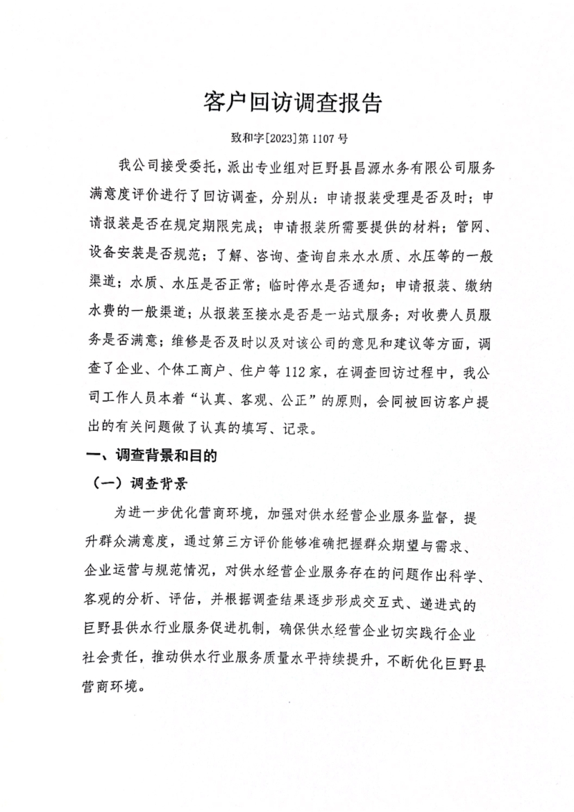 巨野縣昌源水務(wù)有限公司服務(wù)滿意度評價報告