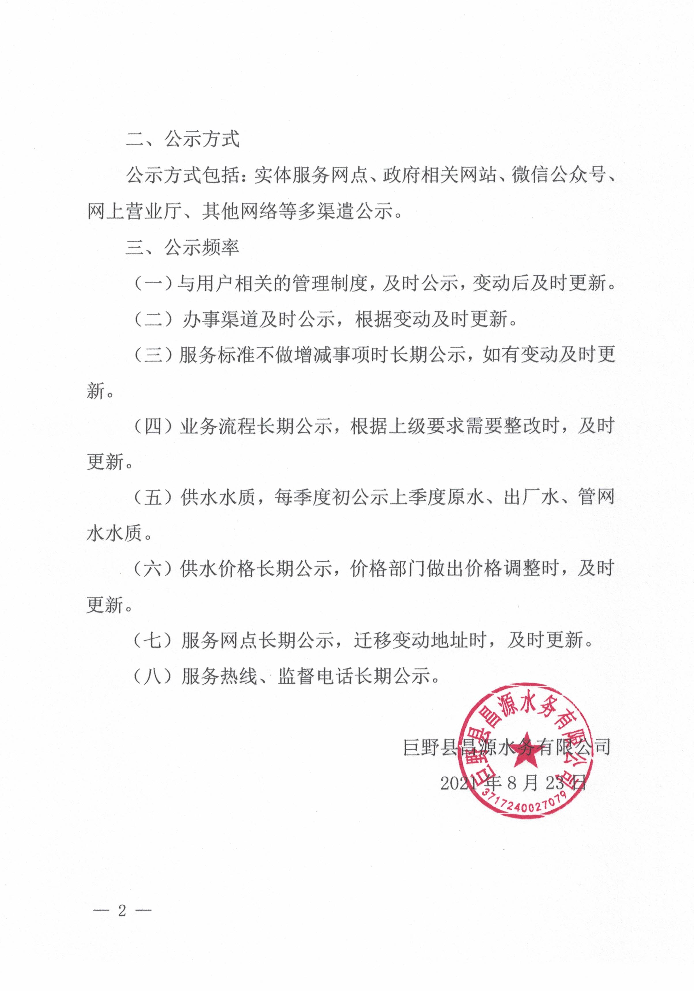 巨野縣昌源水務(wù)有限公司信息公開目錄